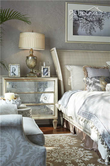 编辑点评:传统粉彩瓷器的娇媚柔和为设计师带来色彩灵感,搭配浅卡其色的全皮质床,点缀上漂亮的绸缎,图案似是白描和水彩,房间的质感呼之欲出。