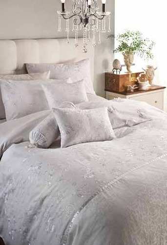白色是永恒的经典色,此款床品没有多余的色彩,单单一种柔和的色泽,就将静谧优雅的气质完全凸显,闪亮的银丝绣线,绣织出代表浪漫爱情的玫瑰花图,床被不同纹理的布面拼接,让单一的白色中显现出丰富的层次感。