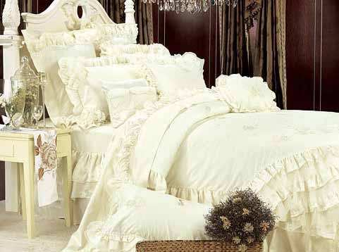 此款床品极富浪漫而奢华之感,纯净的白色,表达出欧式婚礼的圣洁,如婚纱般层叠而飘逸的荷叶边,凸显新婚的喜悦,仿佛爱人间的窃窃私语,轻轻诉说着爱情的神圣与甜蜜,是喜欢欧式婚房的新婚爱侣不错选择。