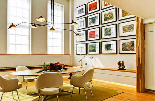 餐厅所在的空间有很不错的装饰画点缀,靠墙边还有收纳设计,中间位置放置了地毯,很容易的就圈出了一个用餐区域。