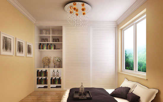 小编点评:巧妙的吊灯和吊顶设计,虽然不用吊顶,卧室的风格也不会差很多,但是经过了这样一个抬高的处理后,整个床和吊灯的距离更近接近,同时还将卧室分成了两个部分,休息区和工作区很好的区别开来。