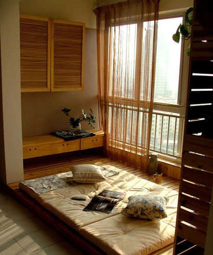 小编点评:地台可以免受潮,对水汽起阻挡作用。在潮气很重的水泥地做一个地台,有利于身体健康。在正对大门的拐角处设计上这样一个小巧的地台,真好能将门外的风景收于眼底,同时还能起到不错的装饰玄关的作用。