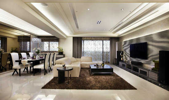 编辑点评:浅色沙发营造休闲情境,晚上在家有LoungeBar的氛围。