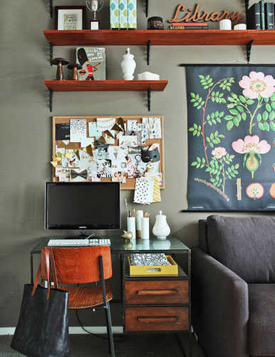 所有的房型都不可能是中规中矩的,总有那么几个小角落有点奇形怪状,在这种情况下空在那就挺可惜了,所以不妨设计成一个放松身心的惬意小书房吧!另外像两面墙的交接处、墙面的拐角处都可以当做一个小工作室来设计。