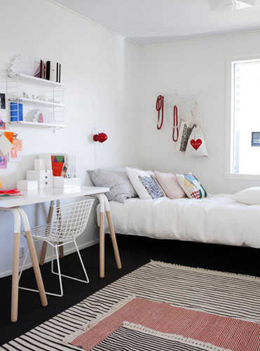 小编点评:这样沿墙而建的书桌其实完全可以设计成可以折叠的款式,这样在使用时竖起来,不用时就放下去,能节省不少空间。