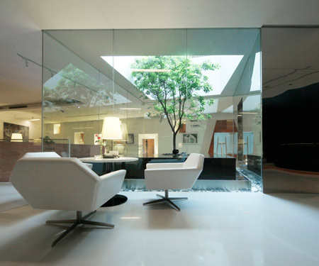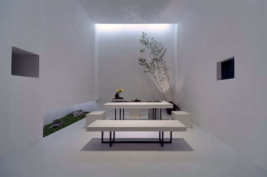 曾先生常常利用中国传统的建筑手法来改变一些空间的格局,庭院、玄关、游廊、透光、鹅卵石、水体、树木……既有传统人文建筑身影的意料之中,也有自然风貌灵活运用的意料之外,他总是尽力凝聚一些中国哲学智慧的空间元素,将自然融入建筑、融入生活,营造一个简朴、自省,充满内聚能量的空间。如同他作品表现出的那份朴素,在设计上曾先生摒弃一切不必要的装饰,在“空”故纳万境的简约中凸显出丰富的想象之“有”,追求动静结合,内外相融,塑造“中国式”含蓄蕴藉、冲淡清远的空间意趣,这既是他展厅的本质元素也是他在设计中秉持的风格原则。