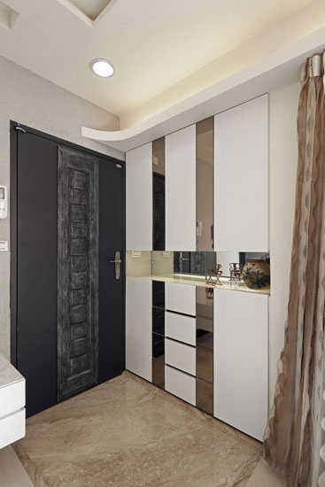 编辑点评:鞋柜与展示台面结合的设计,打造出玄关空间。