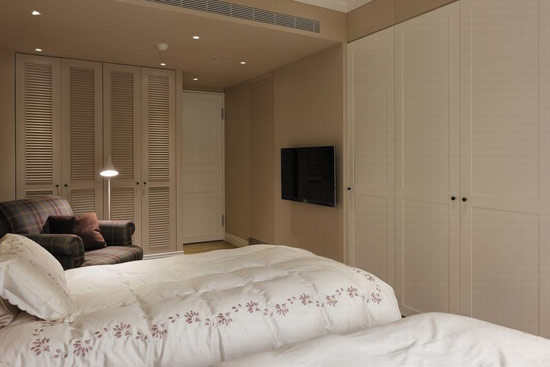 小编点评:计师为屋主一家5口,量身订制属于个人色彩的私密空间,主卧房以奶茶色为主调,营造浓淡适中、高雅的卧眠氛围。