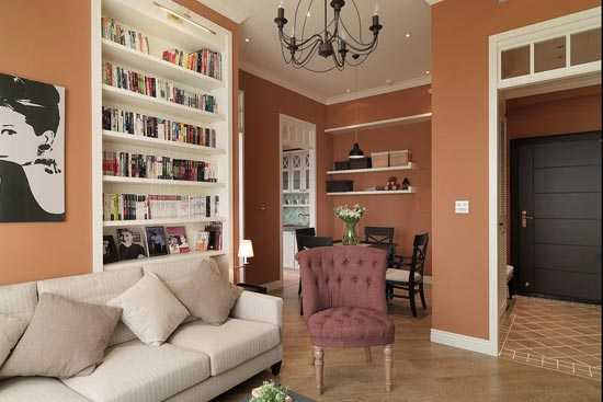 小编点评:设计师在公共空间中选择了大胆的砖红橘色渲染出浓烈的空间色彩,加上储物性超强的白色书架,给人一种耳目一新的感觉。