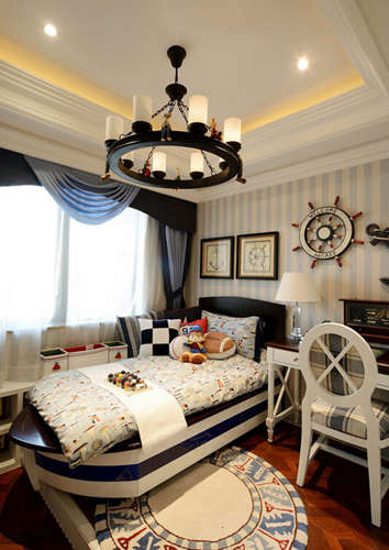 编辑点评:想必这一家的小孩特别喜爱水手风,有一个扬帆远航的梦想。业主根据孩子的喜好为他量身定做了这样一个主题鲜明的房间。这是家长送给孩子最好的礼物之一,孩子看了会惊喜到尖叫!