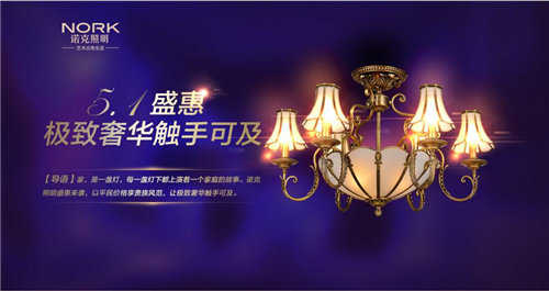 五一临近,新一轮的促销热潮即将开启,诺克照明作为国内高端装饰灯饰第一品牌,首次放下高冷范,以“五一盛惠,极致奢华触手可及”为主题开展优惠促销活动,用四项亲民举措柔情攻陷五一家居市场。