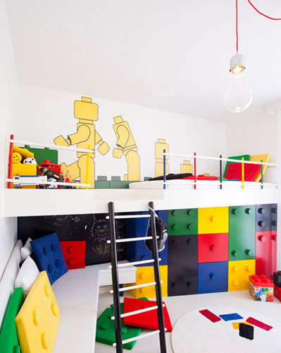 编辑点评:从抱枕到收纳柜,再到背景墙,都采用了积木块进行装饰与点缀。五颜六色的积木块非常的经典,一出现便告示了人们孩子童趣的美好。