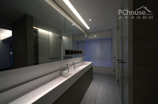 编辑点评:空间的各立面以不同的材质丰富了墙面语言,用色柔和内敛。多次运用的矩形装饰元素简洁利落,勾画出空间的清新与时尚感。