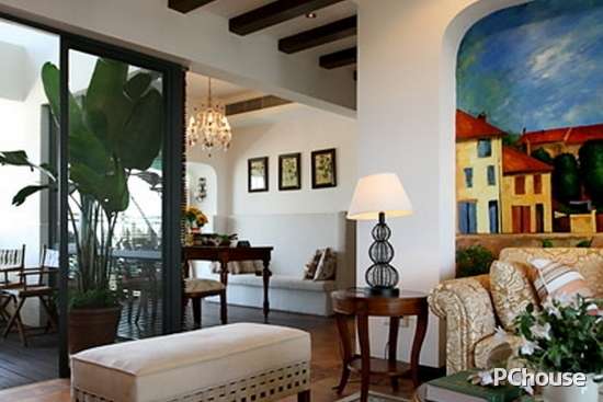 在设计上讲求心灵的自然回归感,给人一种扑面而来的浓郁气息。开放式的空间结构、随处可见的花卉和绿色植物、雕刻精细的家具……所有的一切从整体上营造出一种田园之气。不论是床头台灯图案中娇艳的花朵,抑或是窗前的一把微微晃动的摇椅,在任何一个角落,都能体会到主人悠然自得的生活和阳光般明媚的心情。