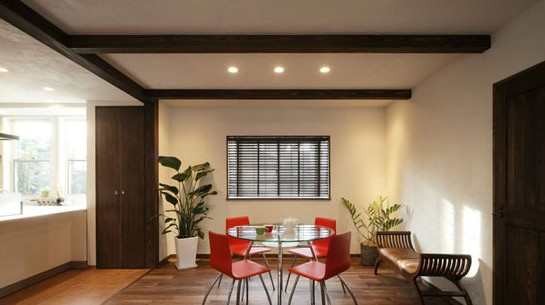 装饰Tips:放眼望去,整体的木色装饰,给整个空间带来的淳朴自然之感。清新可见的木质纹理,仿佛置身于森林之中,清新简洁。透明的圆形餐桌,搭配红色的椅子,亮丽的色彩,一下子就吸引住我们的目光。桌子上,红色、绿色的小茶杯,给餐厅吹来了淡淡的自然色彩。墙壁一侧,竹制的长方形椅子,两侧翘起的扶手,网状的样式,复古气息浓郁。再搭配两盆绿叶植物,不仅给空间增添了清新色彩,也净化了空气,一举两得。