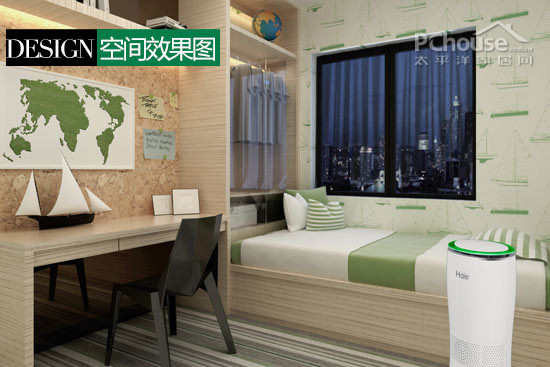 设计解读:浅色的原木家具搭配元气十足的绿色系,清新大方。绝佳的收纳空间设计比例,平衡出卧眠空间的简约与美好。