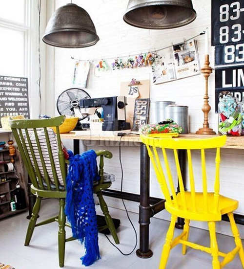 小编的话:带有北欧风格的白色系书房,从书桌椅的设置就能看出这是一间双人书房,可以同时容纳两个人在这边阅读学习,原木色桌面的清新与亮色系的椅子都让你这间书房充满活力,墙面上随意拉起的细绳上悬挂着房主平时从杂质上或是报纸上看到的好东西,是不是特别有书房的味道呢?