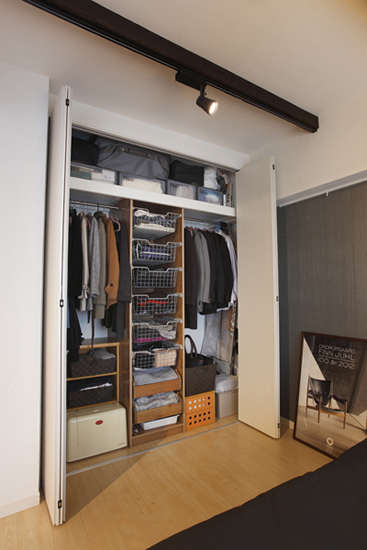 卧室的地板采用了纯天然的松木材料,非常有益于身心健康。步入式的衣橱,具有大容量的收纳功能,分层的样式,使得衣物的摆放更加整齐。