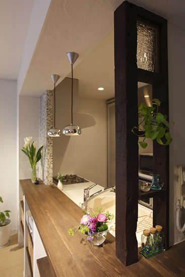 活用了吧台凹陷部分的空间,可以放上装饰品等,使得空间更富有情调。藤编式的竹篮,自然清新,显得别具一格,具有收纳作用的同时还有装饰效果。