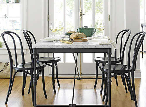 小编的话:黑色四人餐桌靠墙而设,木色地板与白色墙面结合,周围多扇玻璃窗户让这个用餐区显得十分亮堂。