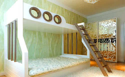 白色的吊顶颜色选择,配合上青绿色的壁纸,让整个卧室充满了活力。而线板的装饰方式,让整个儿童房给人一种文静的感觉。