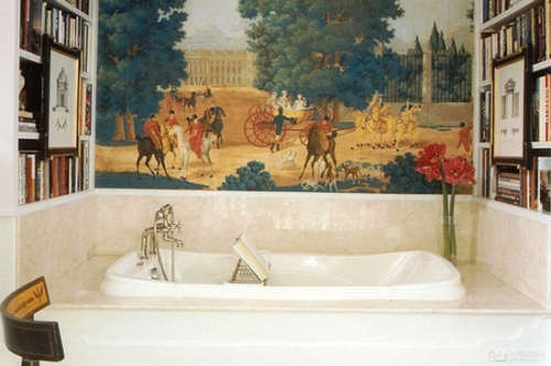 既是浴缸又是书架,泡澡的时候来一本! 在浴室里添上几本书并不意味着你就一定得在这里放上一个又大又高的高级书架来当浴室背景。事实上,浴室中来上一两个尺寸小点的、更为低调一点的书架或者读书角更受常人欢迎也更为实用。