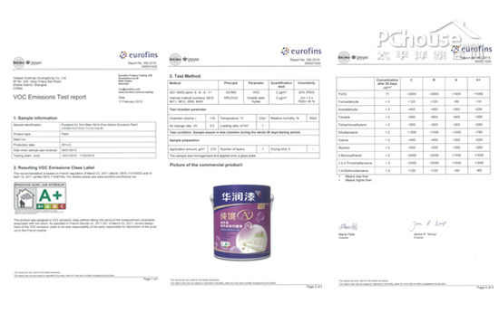 华润漆纯境A+纯环保纯环保抗污全效内墙漆通过国际权威检测机构检测,达到且远优于法国室内空间环境检测的最优级别“A+”,获得法国有关部门的检测报告。