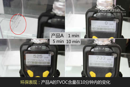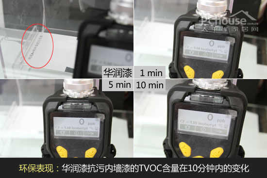 华润漆纯境A+纯环保抗污全效内墙漆为的气体浓度始终为0,产品A气体浓度为—733- 0= 773ppb。