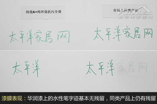 为了能有效解决各种常见墙面问题,给墙面全方位呵护,华润漆纯境A+纯环保抗污全效内墙漆含有陶瓷微粒,能够高效抗污,污渍在墙面难以停留,轻轻一擦墙面马上洁净如新。在测试产品的漆膜表现时,我们同样使用同类产品A作为对比。