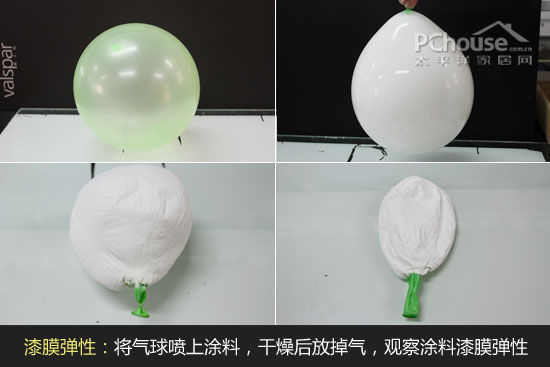 墙面使用久了经常会出现细微的裂纹,这是由于涂料漆膜的弹性较差造成的。我们使用气球来测试华润漆纯境A+纯环保抗污全效内墙漆的漆膜弹性。
