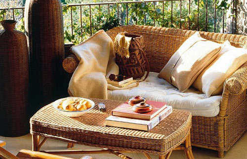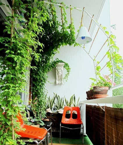 竹编制品的桌椅,是阳台花园的最佳选择。搭设盆架,种植花草,藤蔓,形成自然景观,那场景真是悠然自得。