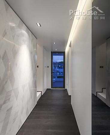编辑点评:狭长的楼梯因为黑色线条的勾勒极具延伸感。反光墙面的采用让整个空间摆脱了压抑感。楼梯间的光线设计成内嵌在墙面,大小不一的气泡,有种拾级而上的互动,并与外立面协调一致。