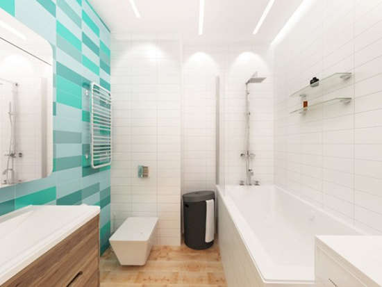 小编的话:白色的墙面瓷砖简洁大气,左侧墙面深浅不一的绿色瓷砖拼贴在整个卫浴间内是一个十分突出的设计,充满灵动的现代感。