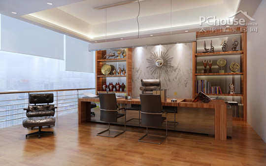 编辑点评:设计师在总经理办公室的设计上,色彩搭配除了清透、雅致、稳重、大气之外,亦表现出一种力度感和效率感。