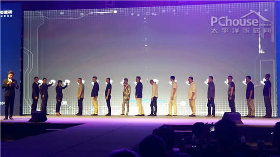 中国设计师代表与简一大理石瓷砖代表上台发表祝福语及参与启动仪式