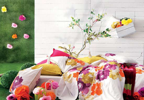 用浅色花朵图案营造富于生机的卧室氛围,色彩搭配令人愉悦而放松。即使空间里没有其他装饰,只需这些花朵图案的床品、靠包及花朵装饰,就足以让卧室变得充满生机活力,十足养眼。