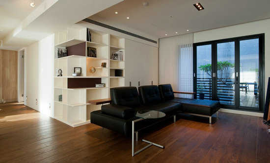 编辑点评:客厅沙发背墙局部的镂空让客厅与书房采光有了互动,也让一个人的生活多了份自在。