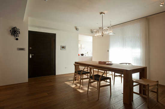 编辑点评:夫妻俩皆属于高知识分子的屋主,对于美学有着各自的个性想法,设计师融合其想法做出了两人皆满意的居宅空间。大餐桌面的选用,加上设计灯款点缀让餐厅自然的成为住家凝聚中心。
