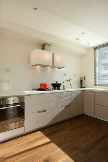 编辑点评:设计师破除原格局中厨房的封闭性,让光影跨越炉灶有了清新样貌,而旧有厨具尺度过小使用不便问题,在此也有了完美解决方案。