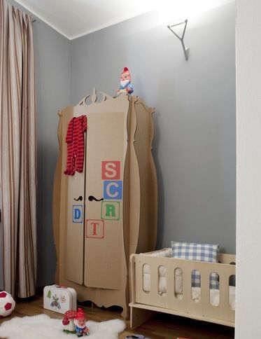 儿童房的衣柜采用的是硬纸板材质,更为环保。