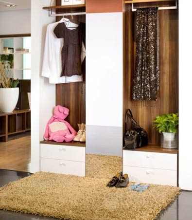 中国家庭的玄关一般都不大,但是其实蕴含着强大的功能性——服装和鞋的收纳。为了使主人进屋后可以尽快脱去室外的污浊,为了使一进屋的客人脱掉外套后不会束手无措,玄关兼职衣帽间很有必要。