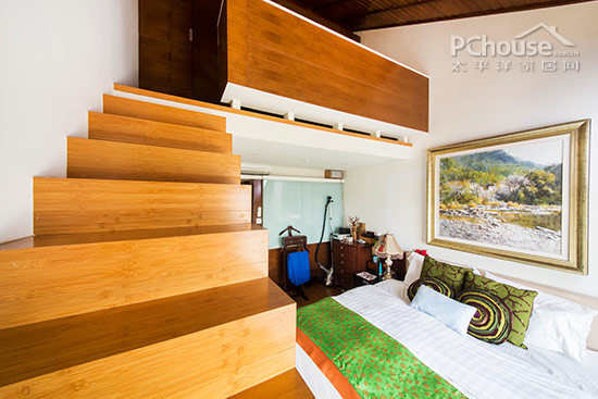 小编点评:以用色温婉的床头的收纳木柜来呼应木质地板,其自然质朴的元素,沉淀了喧嚣的心境。