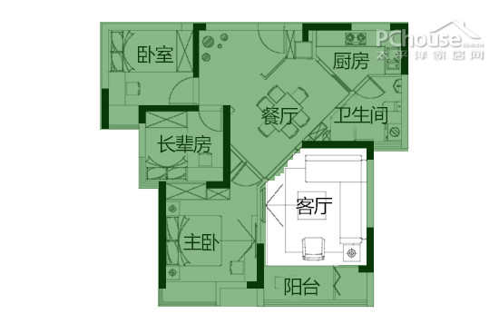 3:客厅面积虽大,但在空间中过于独立,显得很小气。