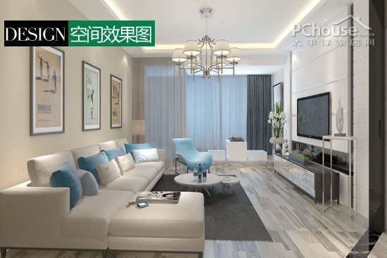 设计解读:清新的蓝白色调,为家居注入一丝静谧感;不规则的条纹木板变化与抛光的电视柜面一起丰富了平静的家居表情,打造了舒活闲慢的生活状态。