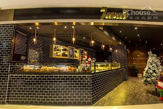 编辑点评:收银区的圣诞老人玩偶们和圣诞树十分应景,为整个餐厅多了一丝俏皮可爱。黑色墙砖纹瓷砖有很强的视觉延伸效果。黑色天花板上的灯光酷似繁星,一点、一片,照亮了整个餐厅。