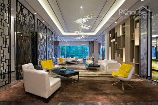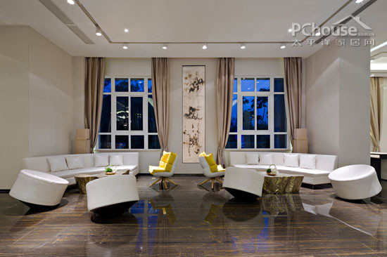 编辑点评:休闲区的家具及装饰品摆放较为随意,显得舒适、自然。然而鲜艳黄、简约白、高贵黑、雅致褐色、宁静蓝等多种色彩的搭配设计,为空间增添了优雅和大气之感。色彩的精彩碰撞搭配,空间中的静雅、动感气质呼之欲出。