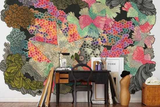 书房或工作区的墙面绘画没有逼格怎么行?这不是一盒蜡笔就能解决的事,可以选择丙烯颜料或者水粉颜料,艳丽度和覆盖性都比较好。比较复杂的图案需要先在墙上用铅笔画好底稿,再逐步加强,最后将调好色的颜料一点一点涂上。