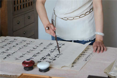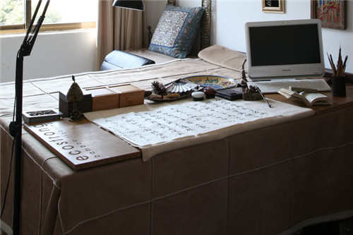 二楼临窗的房间是书房,书房的设置是创作室兼休息室,阳光好的时候,可以在这里临帖写字或是做点小手工。