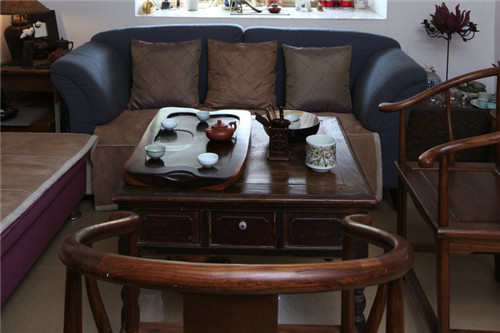 中式气息浓重的室内设计,简单的硬装并没有影响到每一个空间的热情,这里也可以是和朋友们的茶话会据点。