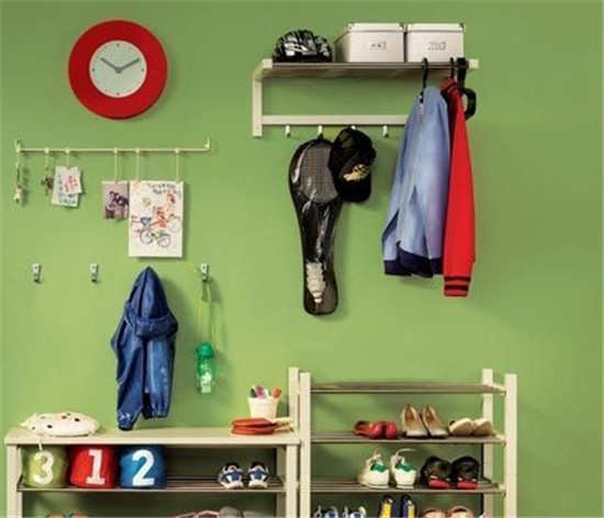 与储物搁架结合的衣帽架不单能收纳衣物,上层的搁板还可以放暂时不穿的鞋子等物品;单独的衣物挂钩则用途更加灵活,收纳衣物、水壶等物品都不在话下。
